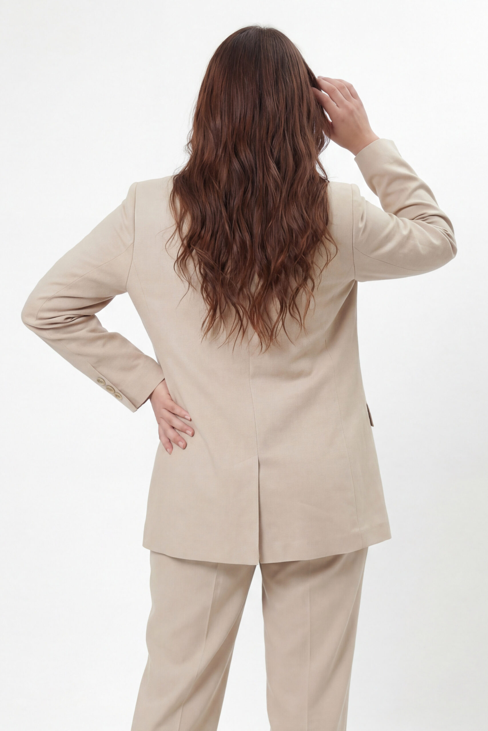 Tkanina o składzie 80% poliester, 20% wiskoza jest lekka, miękka i przyjemna w dotyku. Materiał dobrze się układa, jest trwały i łatwy w pielęgnacji, dzięki czemu marynarka zachowuje elegancki wygląd na długo.