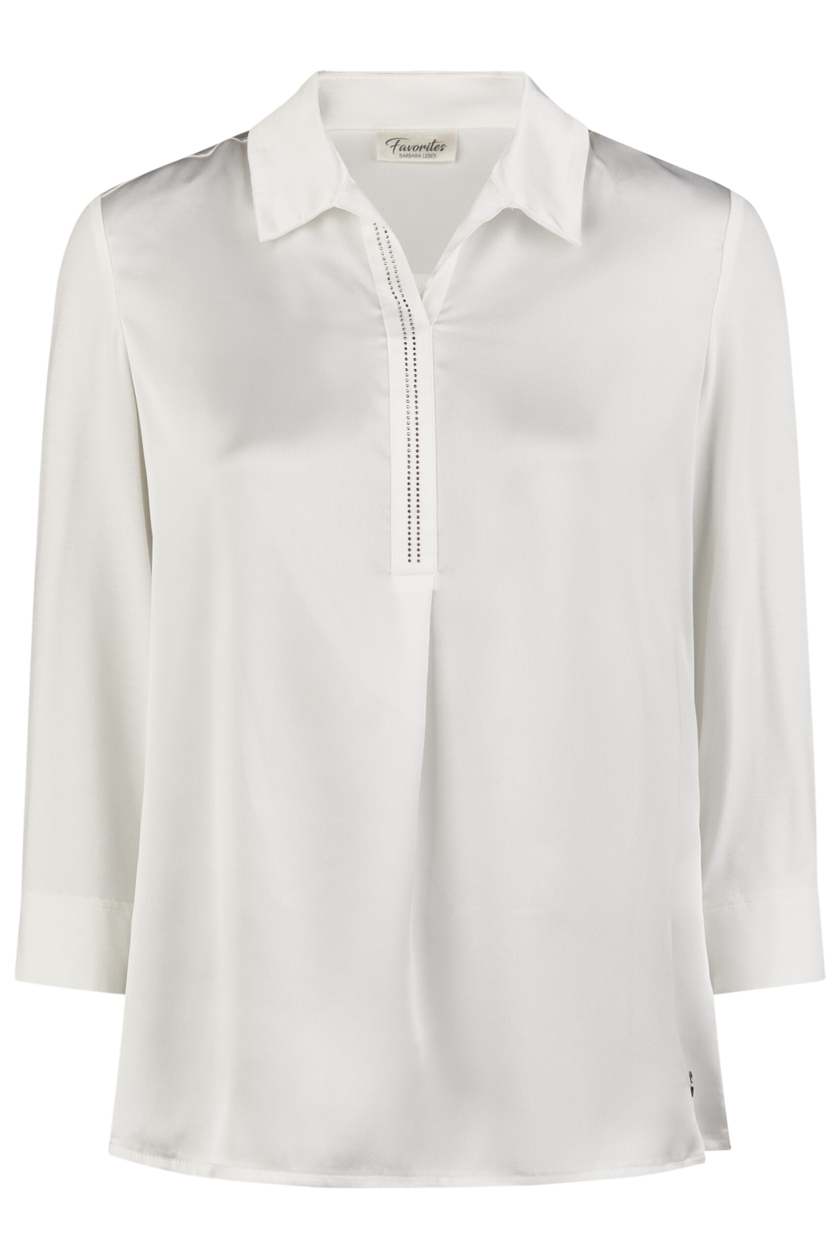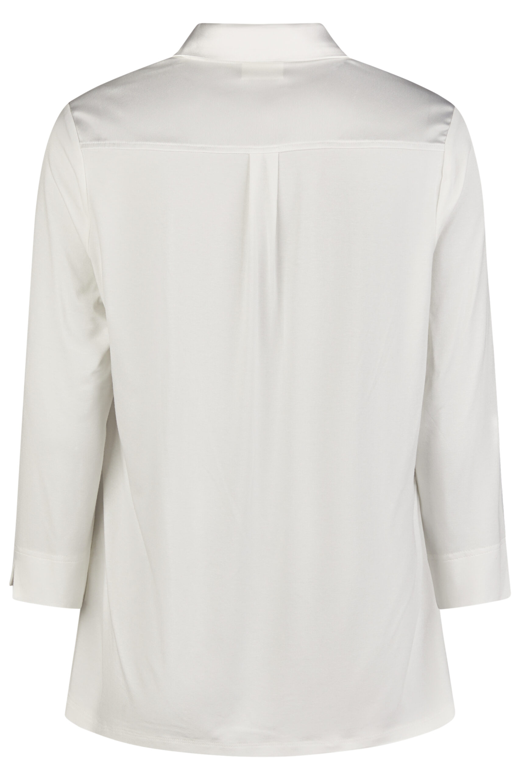 Klasyczny biały kolor sprawia, że model jest niezwykle uniwersalny i pasuje zarówno do eleganckich, jak i codziennych stylizacji. Prosty fason z kołnierzykiem subtelnie wydłuża sylwetkę, a dekolt w szpic wysmukla optycznie szyję. Ozdobna plisa z delikatnymi perforacjami nadaje całości lekkości i nowoczesnego charakteru. Rękaw 3/4 zapewnia komfort noszenia i jest idealnym rozwiązaniem na każdą porę roku.
