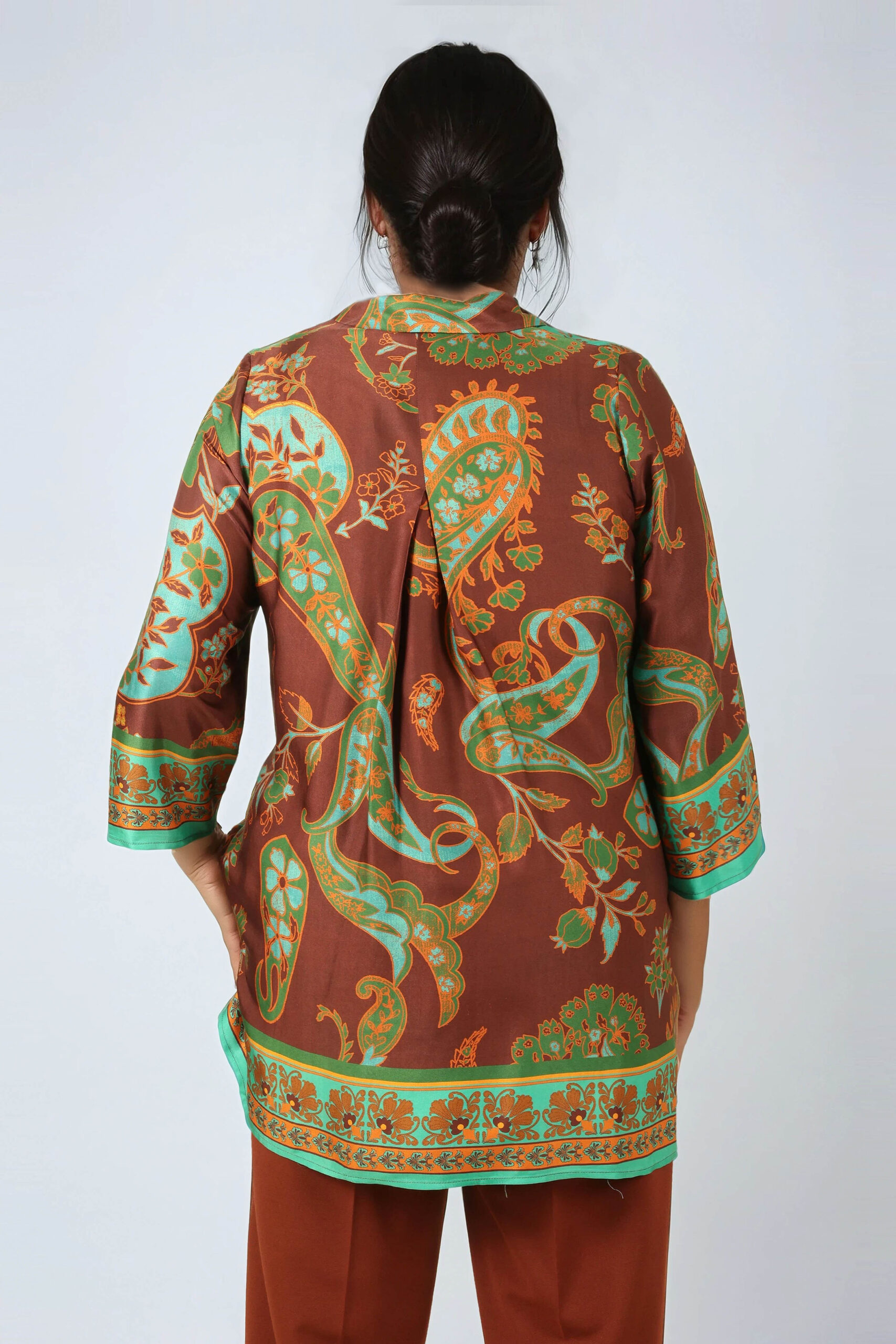 • kolor: turkusowo-brązowy z roślinnym wzorem boho