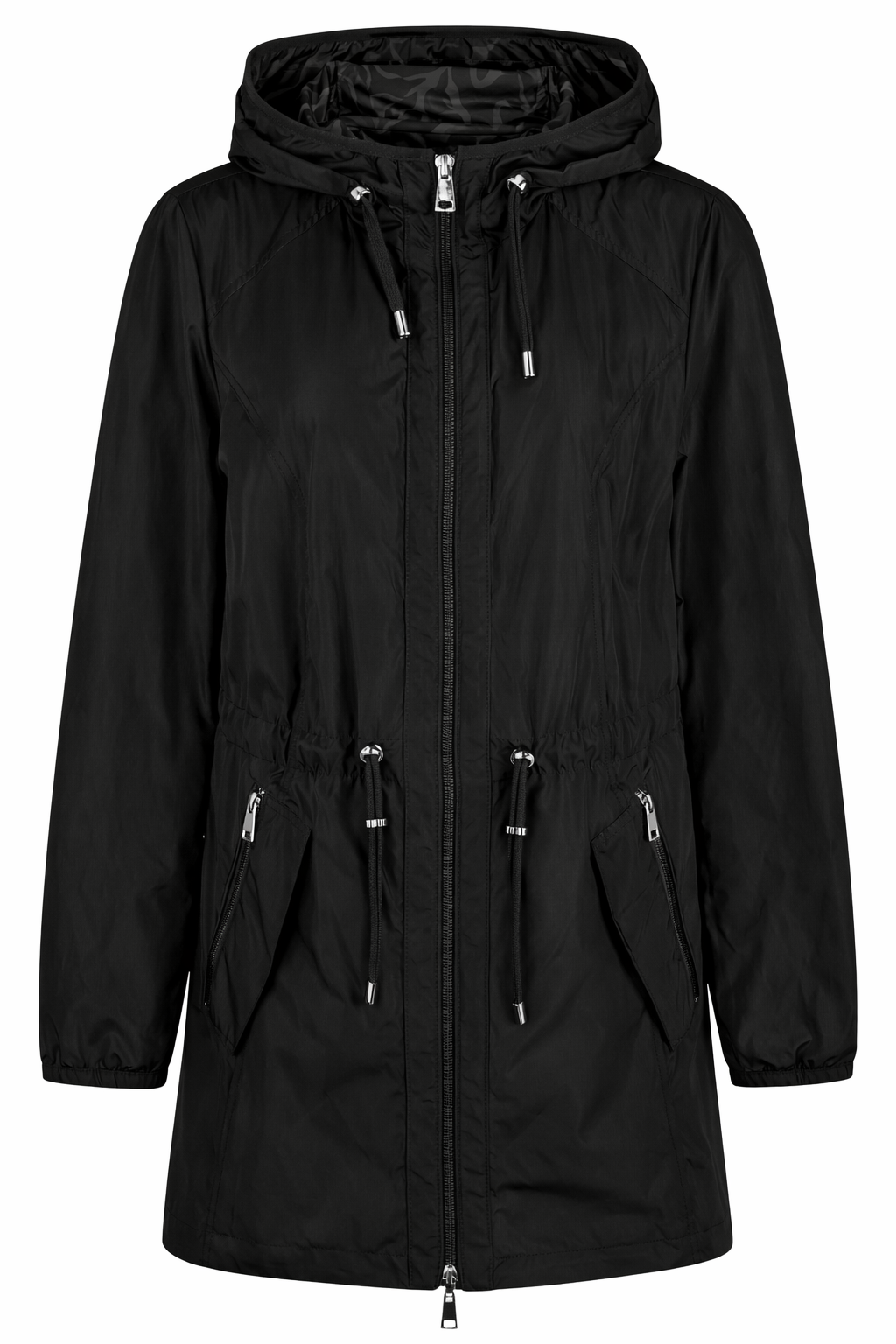 Kurtka posiada wygodny kaptur z regulacją oraz zapięcie na zamek błyskawiczny na całej długości. Regulacja w talii pozwala delikatnie dopasować fason do sylwetki i podkreślić jej proporcje. Praktyczne kieszenie zwiększają funkcjonalność modelu i zapewniają miejsce na drobne przedmioty.