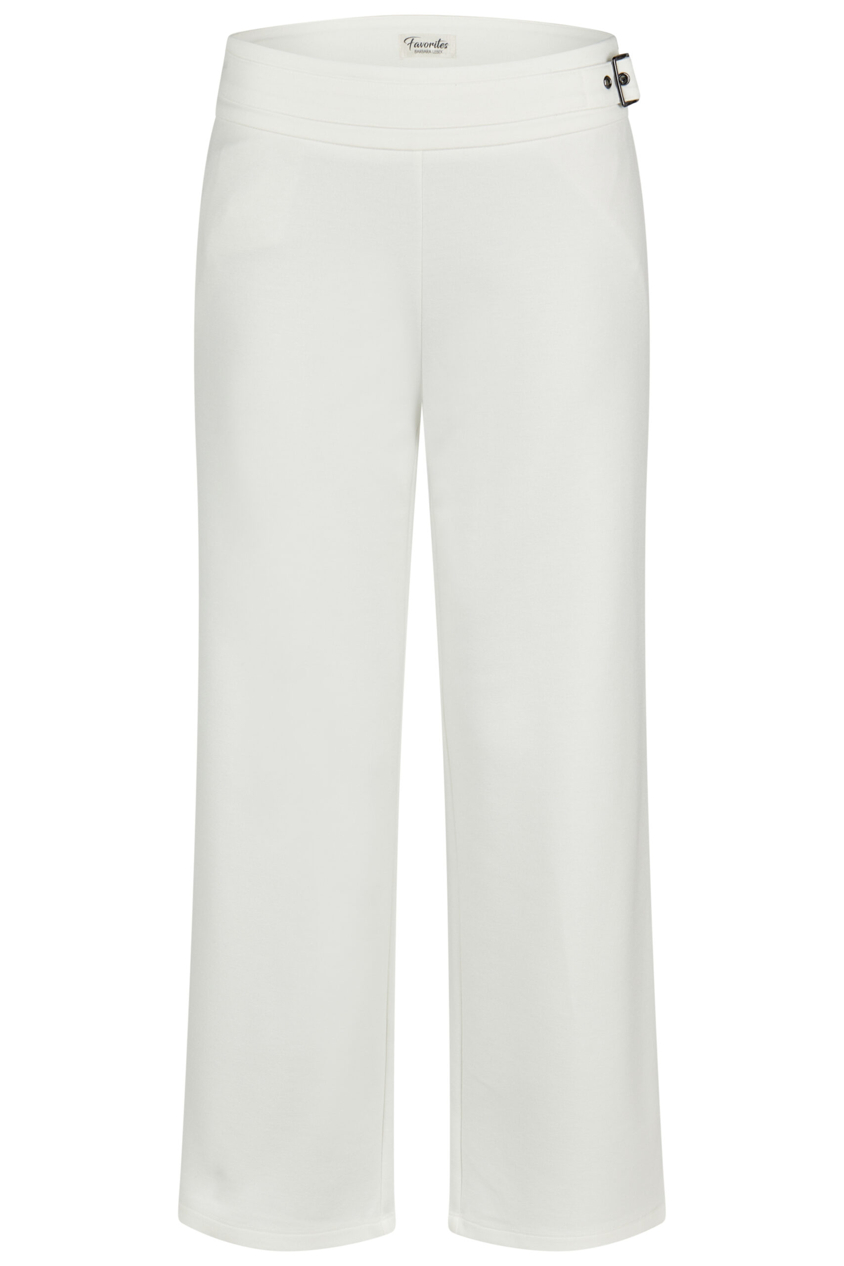 Wysoki, gładki pas nadaje sylwetce proporcji i zapewnia wygodne dopasowanie, a subtelna ozdobna klamra dodaje całości nowoczesnego charakteru. Tkanina jest miękka, przyjemna dla skóry i pięknie się układa, dzięki czemu spodnie prezentują się niezwykle estetycznie.