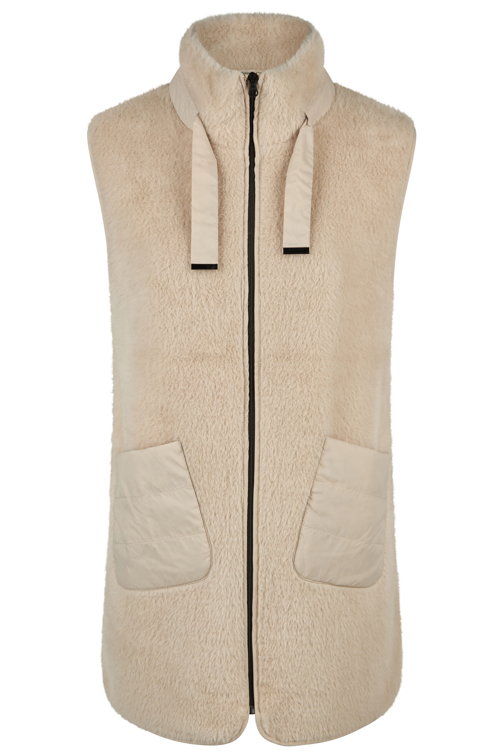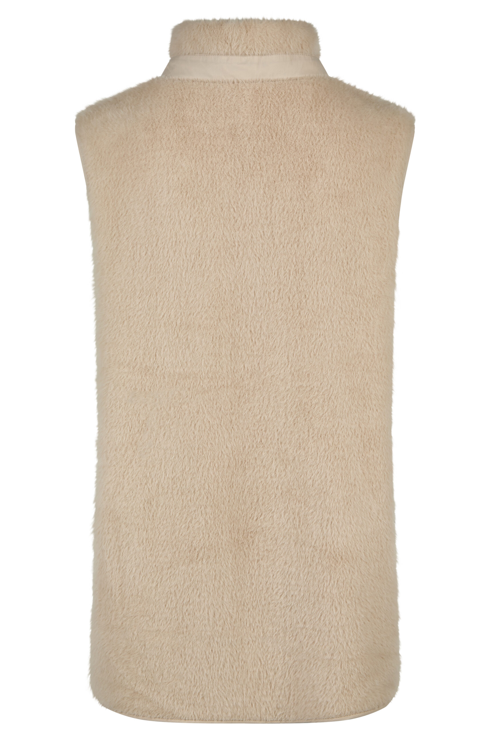 Praktyczna i modna kamizelka damska w kolorze ciepłego beżu, idealna na chłodniejsze dni. Uszyta z miękkiego, przyjemnego w dotyku materiału o strukturze „miśka”, który zapewnia ciepło i komfort.