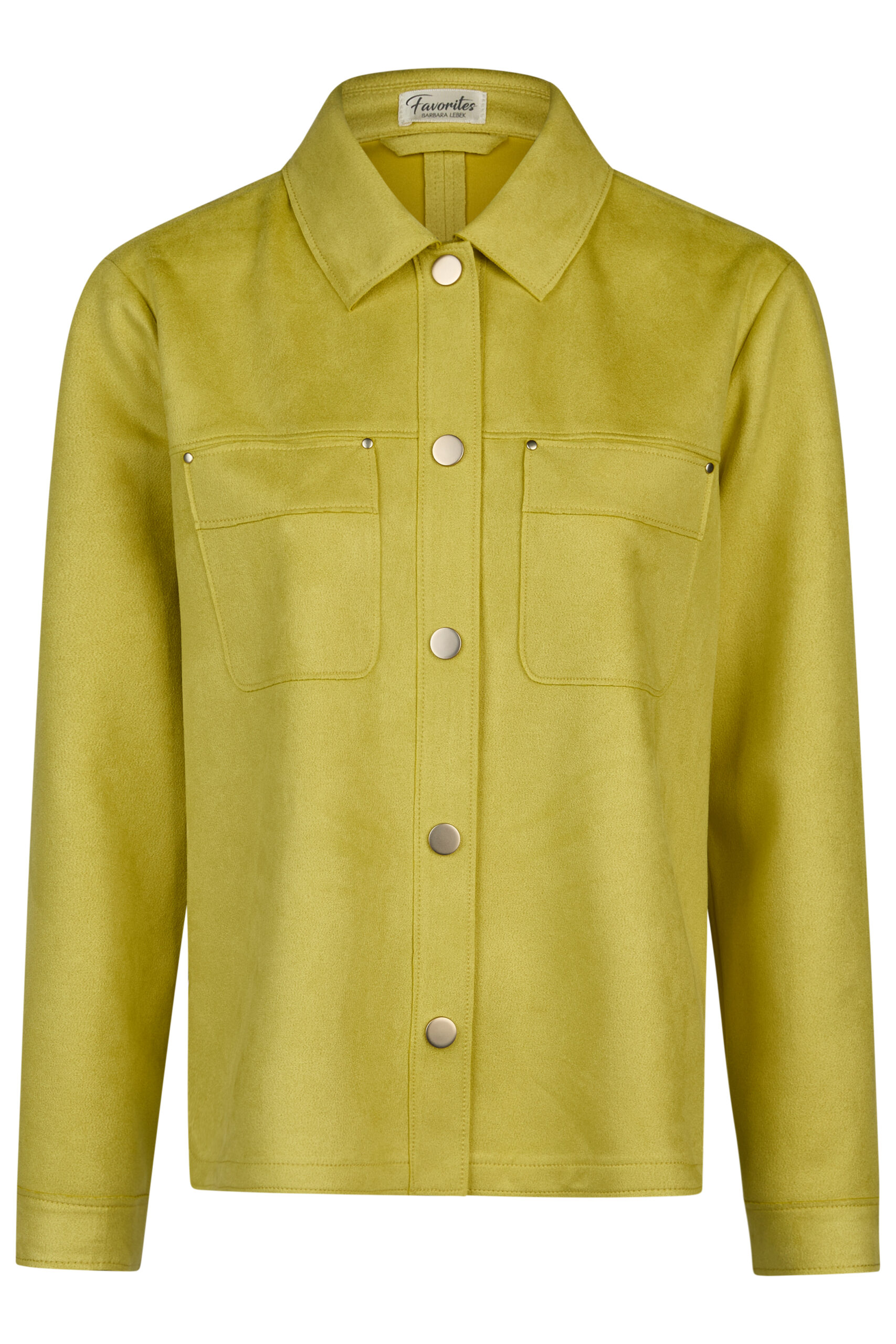 Kurtka ma klasyczny kołnierz koszulowy, długie rękawy oraz zapięcie na metalowe napy w srebrnym odcieniu, co nadaje jej nowoczesnego charakteru. Na przodzie znajdują się dwie naszywane kieszenie z klapką, które podkreślają casualowy, lekko militarny styl. Intensywny, modny odcień limonkowej zieleni sprawia, że model wyróżnia się i ożywia każdą stylizację.