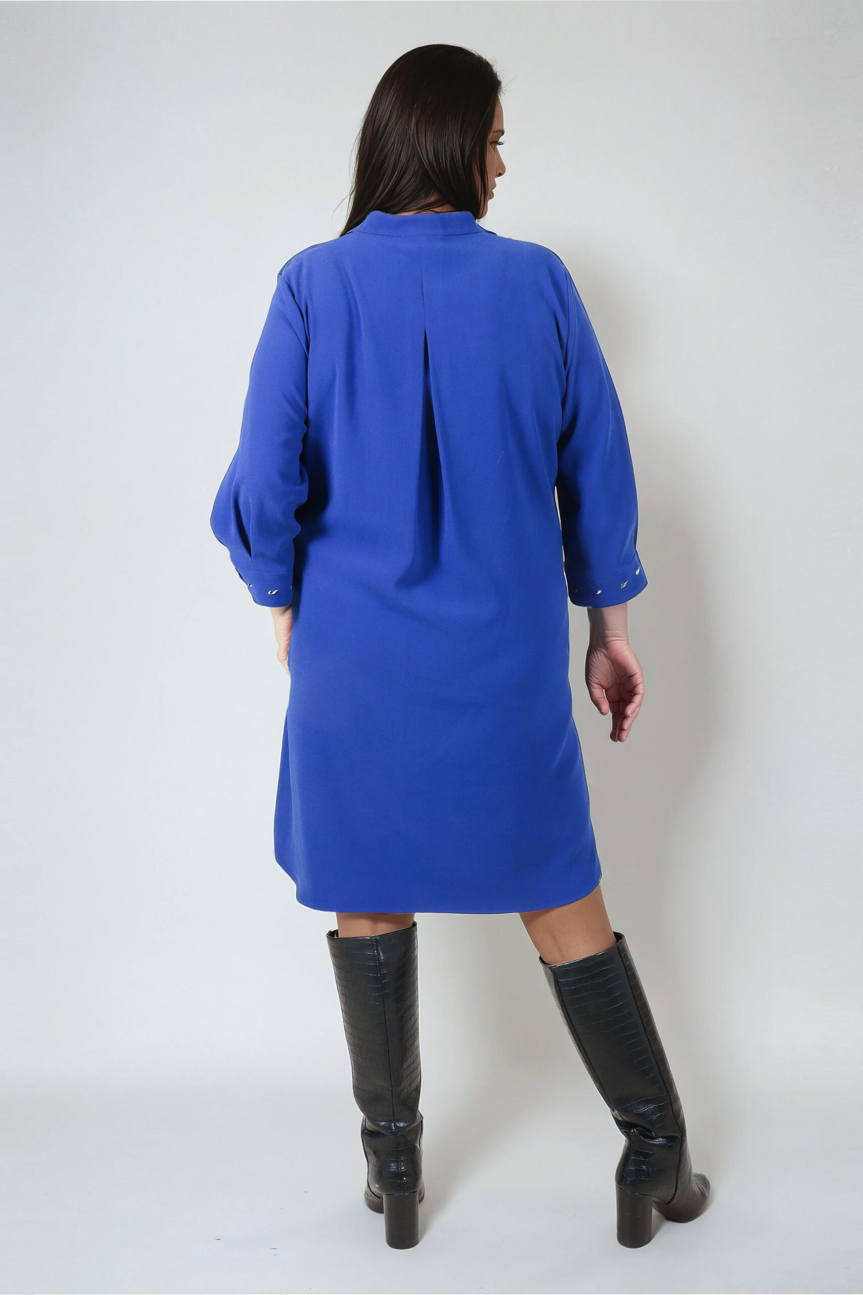 Model w energetycznym, niebieskim kolorze przyciąga uwagę i dodaje świeżości stylizacji. Sukienka ma luźny fason w kształcie litery A, dzięki czemu zapewnia swobodę ruchów i doskonale maskuje ewentualne niedoskonałości figury.