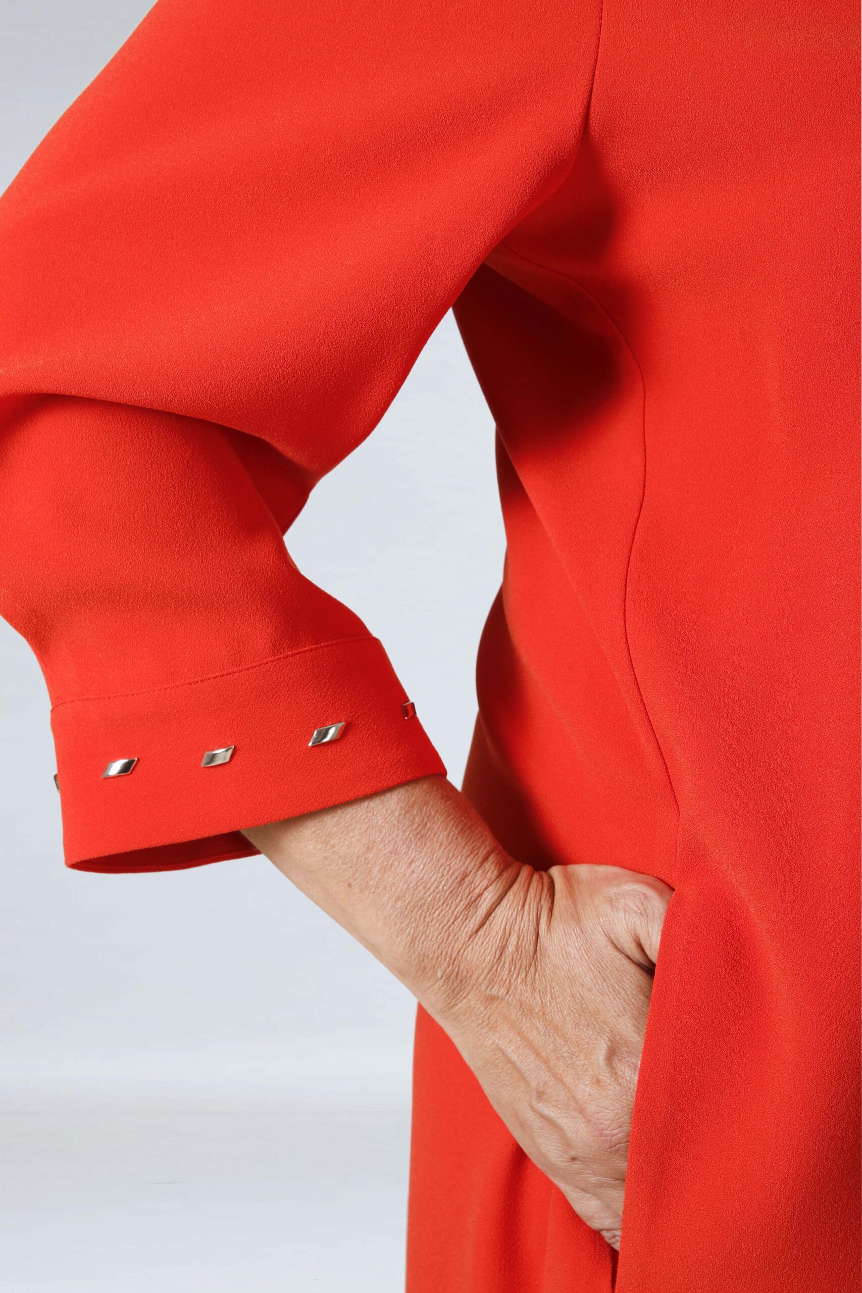 Model w energetycznym, pomarańczowym kolorze przyciąga uwagę i dodaje świeżości stylizacji. Sukienka ma luźny fason w kształcie litery A, dzięki czemu zapewnia swobodę ruchów i doskonale maskuje ewentualne niedoskonałości figury.
