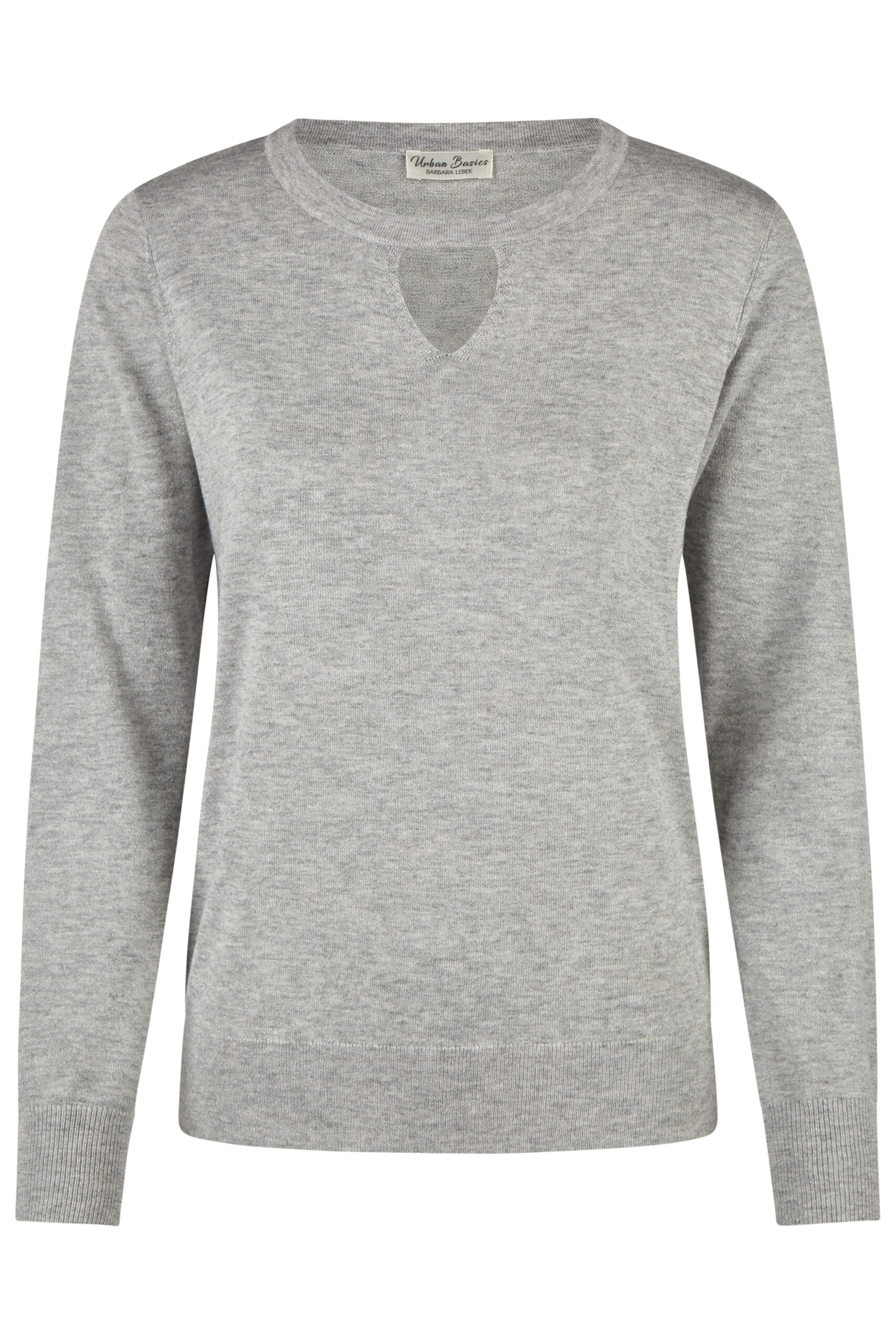 Bluzka posiada długi rękaw oraz ozdobną łezkę przy szyi, która dodaje jej lekkości i kobiecego wdzięku. Neutralny, szary kolor sprawia, że łatwo łączy się z innymi elementami garderoby – idealnie komponuje się zarówno z klasycznymi spodniami materiałowymi, jak i jeansami czy elegancką spódnicą.
