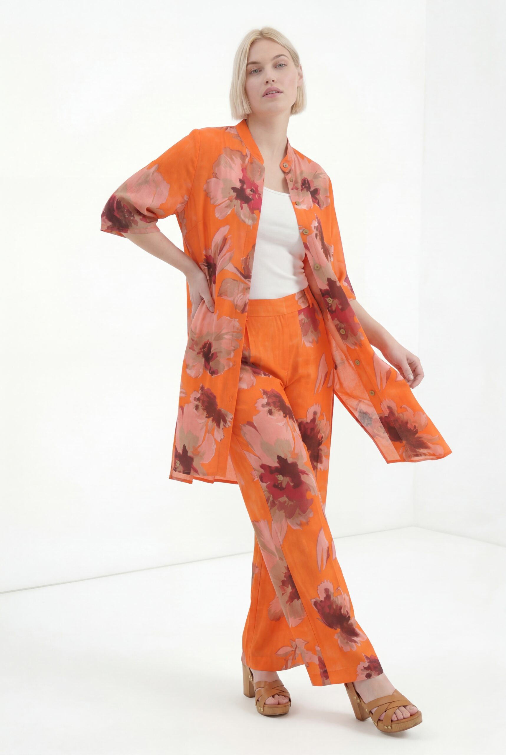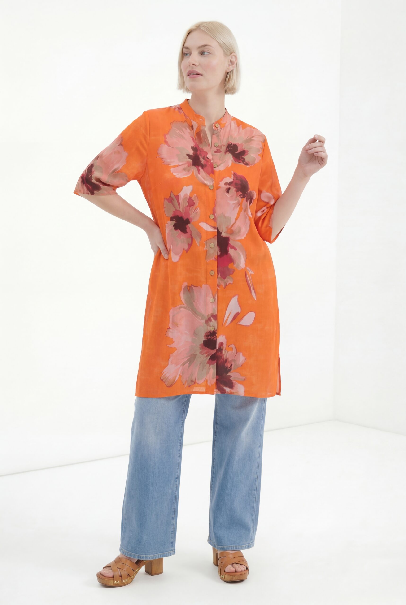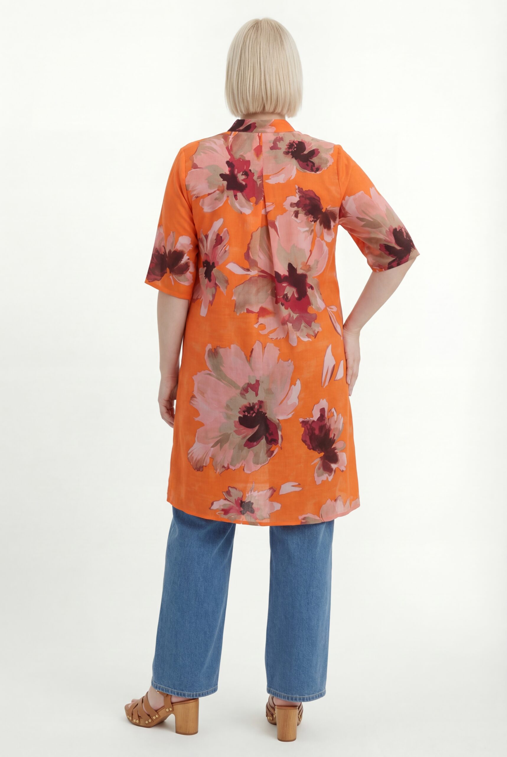 Tunika  JMP plus size – wiskozowo-lniana w pomarańczowe kwiatyTunika JMP plus size – wiskozowo-lniana w pomarańczowe kwiaty